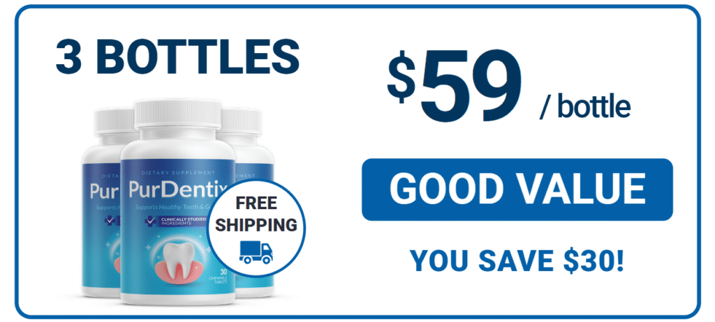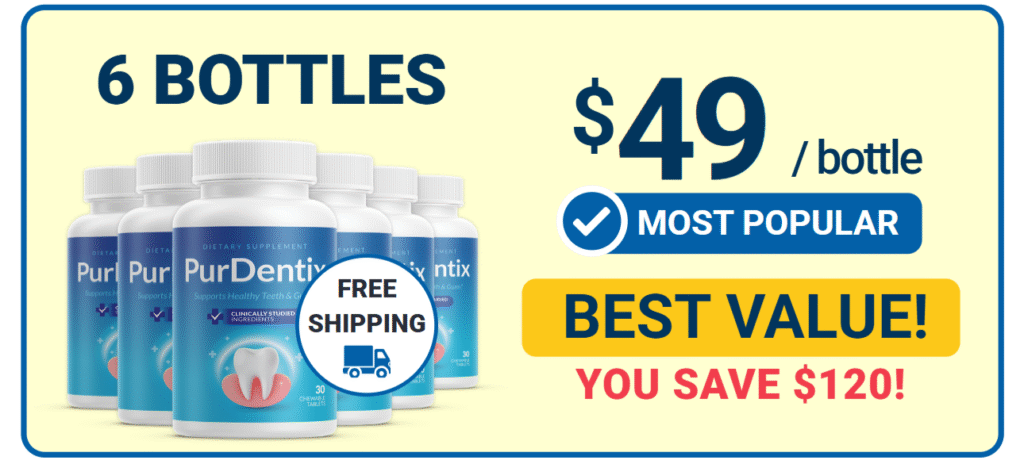 We recommend taking PurDentix for at least 3 to 6 months to improve oral health. We offer a 6-bottle package that comes with 2 free bonus books. This is the most popular package, which also comes with free shipping.